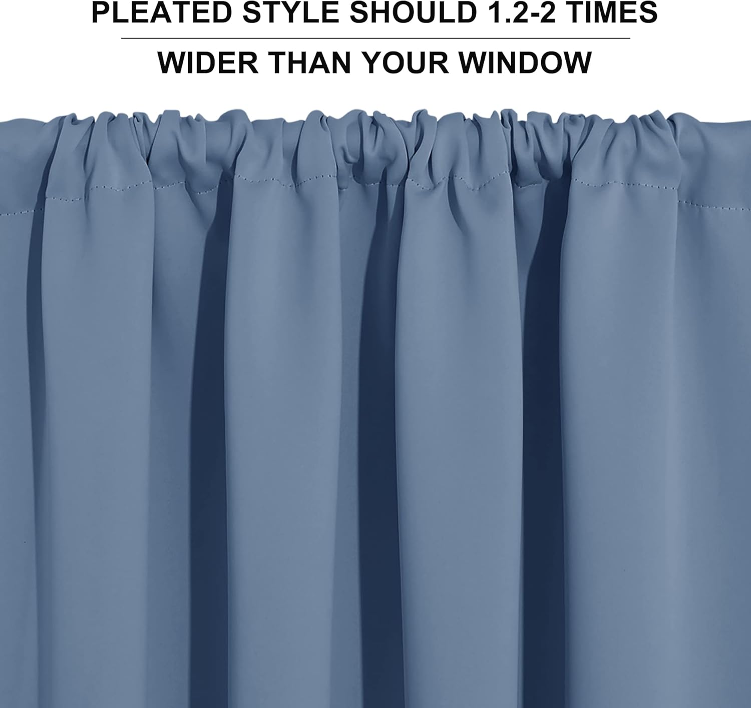 RYB HOME Blackout Curtains for Kitchen, Over Sink Privacy Curtains Window Decor, Thermal Insulating Drapes for Bathroom Cafe Bedroom Small Window, W 42 x L 24 inch, Stone Blue, 2 Panels
