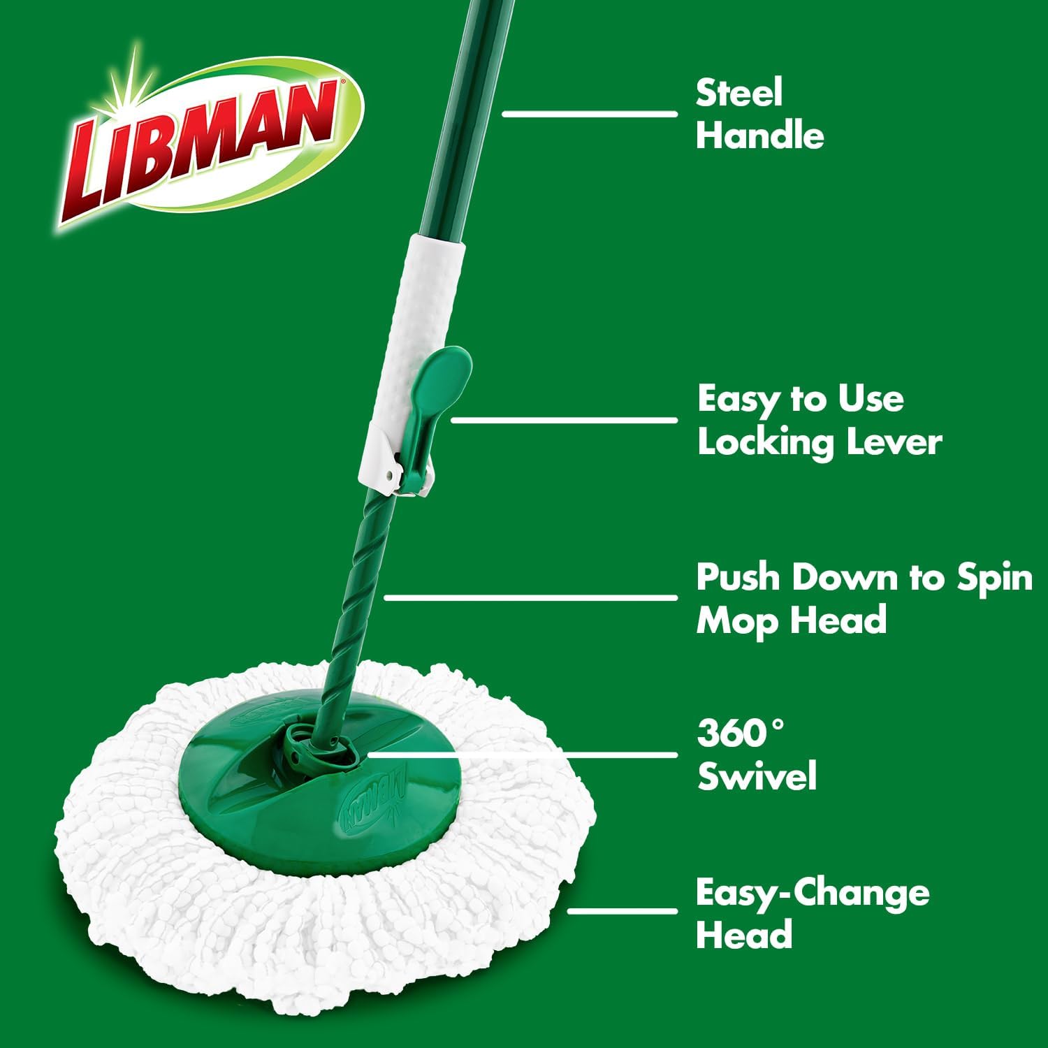 - MACHINE-WASHABLE MICROFIBER MOP HEAD: The ultra-absorbent microfiber spin mop head lifts and traps dirt and water, helping floors dry faster; this Libman spin mop and bucket with wringer set for home comes with 2 extra spin mop refills; replace every 3 months or sooner
