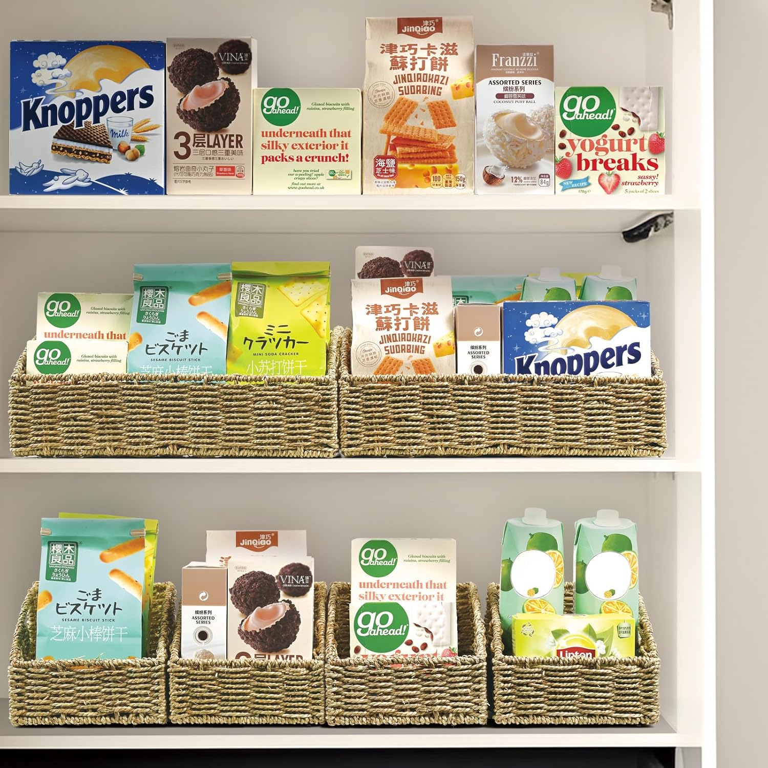 Ollieroo Natural Seagrass Storage Baskets, Handwoven Wicker Storage Bins with Built-in Handles, Storage Container Baskets for Shelves, Bedroom, Bathroom, Laundry Room or Kitchen(Green)