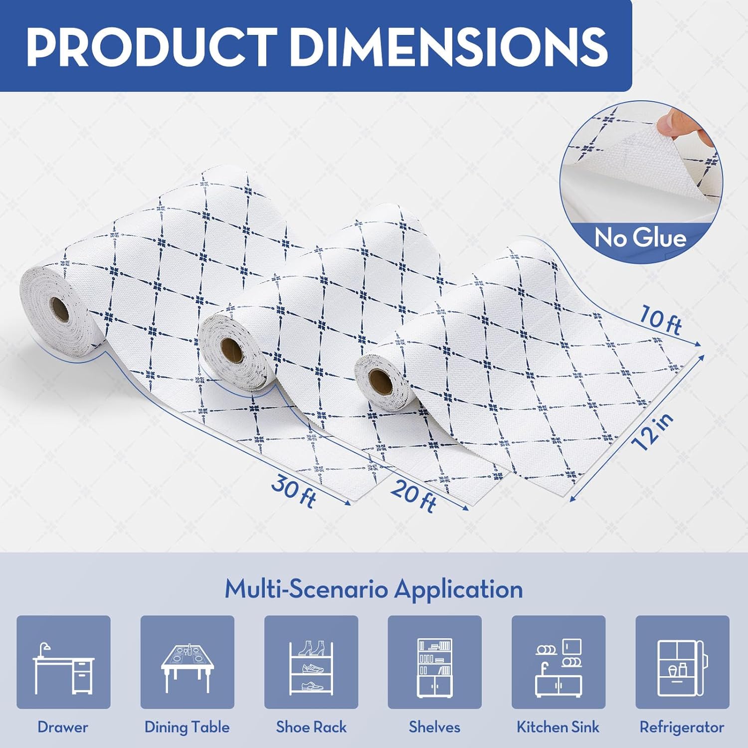 - ăNon-AdhesiveăKitchen Shelf Liner: Made of PVC composite material, which is glue-free and has enough grip, so glue is not required,don't worry about damaging the surface of the cabinet, avoiding the damage of the glue to the surface of the cabinet, drawer, table and shelf