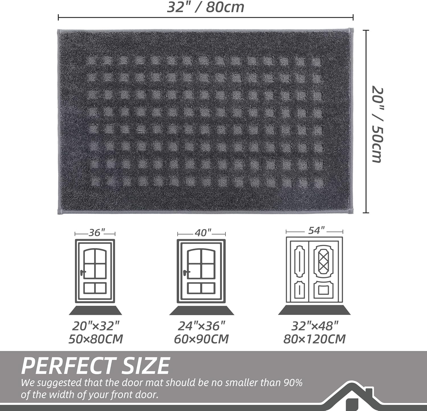 BEQHAUSE Waffle Door Mats Indoor 20"x32", Dog Mat for Muddy Paws Absorbent and Dirt Resist Floor Mats Non-Slip Washable Rugs for Entryway, Welcome Mat for Front Back Door, Muddy Wet Shoes, Dark Grey