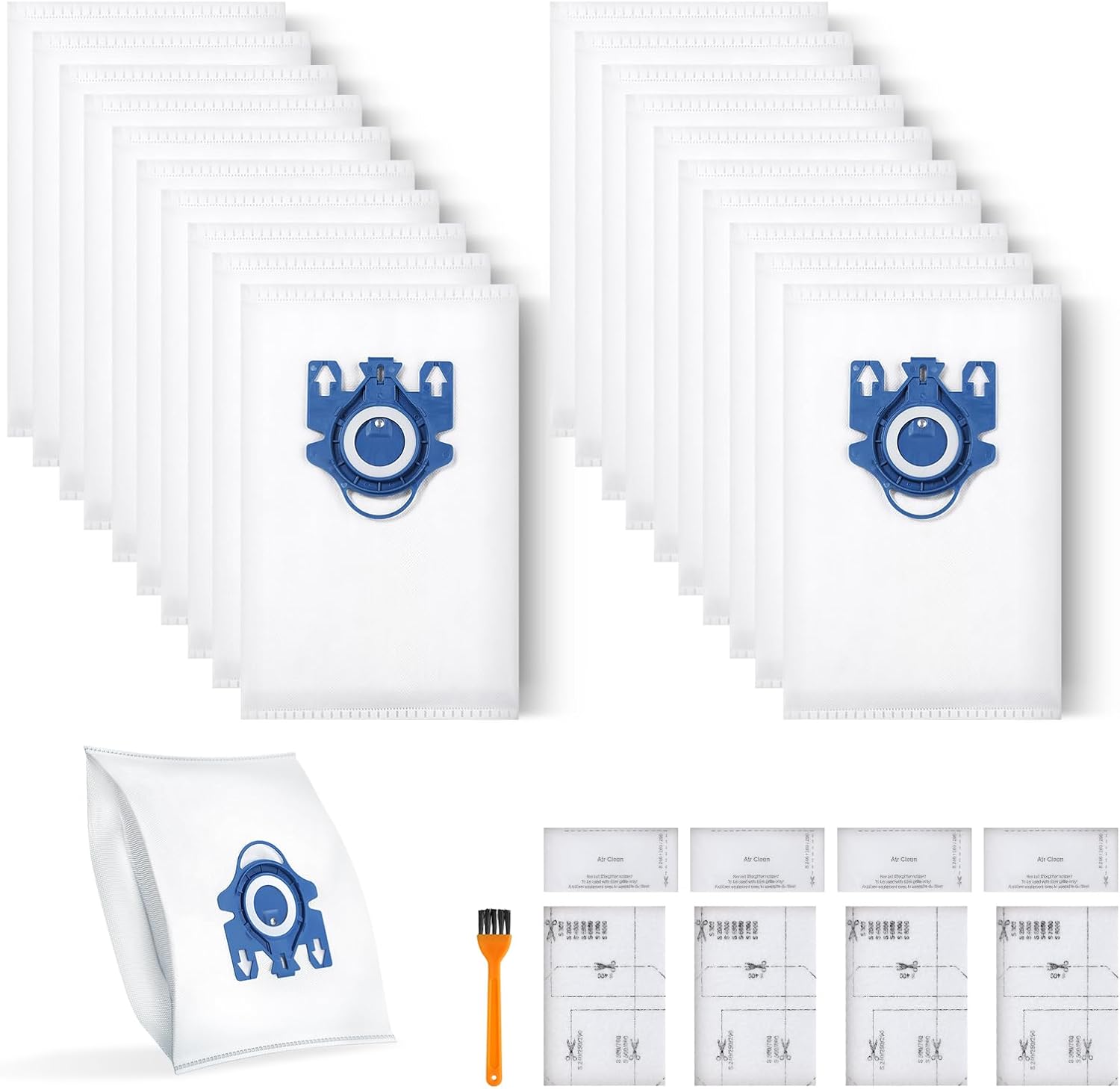 - [Value Pack]- You will receive 20 vacuum bags, 5 motor protection filters, 5 air filters, and 1 cleaning brush from Rowhalf.