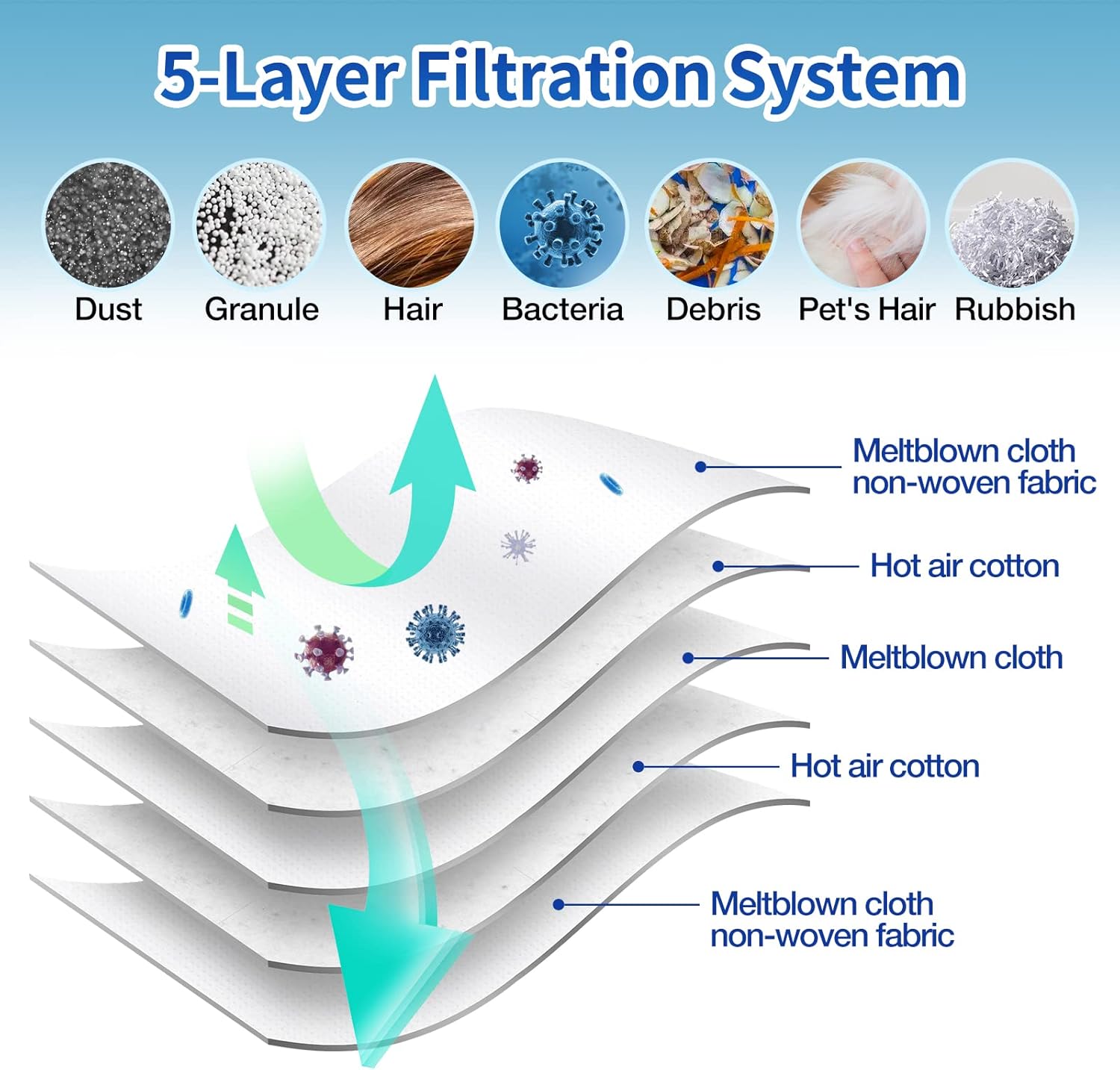 - Excellent Adsorption]- Designed with a variety of high-quality materials, the 5-layer filtration system can effectively adsorb dust and debris. The self-locking self-sealing ring will automatically close when the bag is removed, effectively reducing the risk of air leakage. Ensure that the particles inhaled by the vacuum bag are not easily released into the air again.