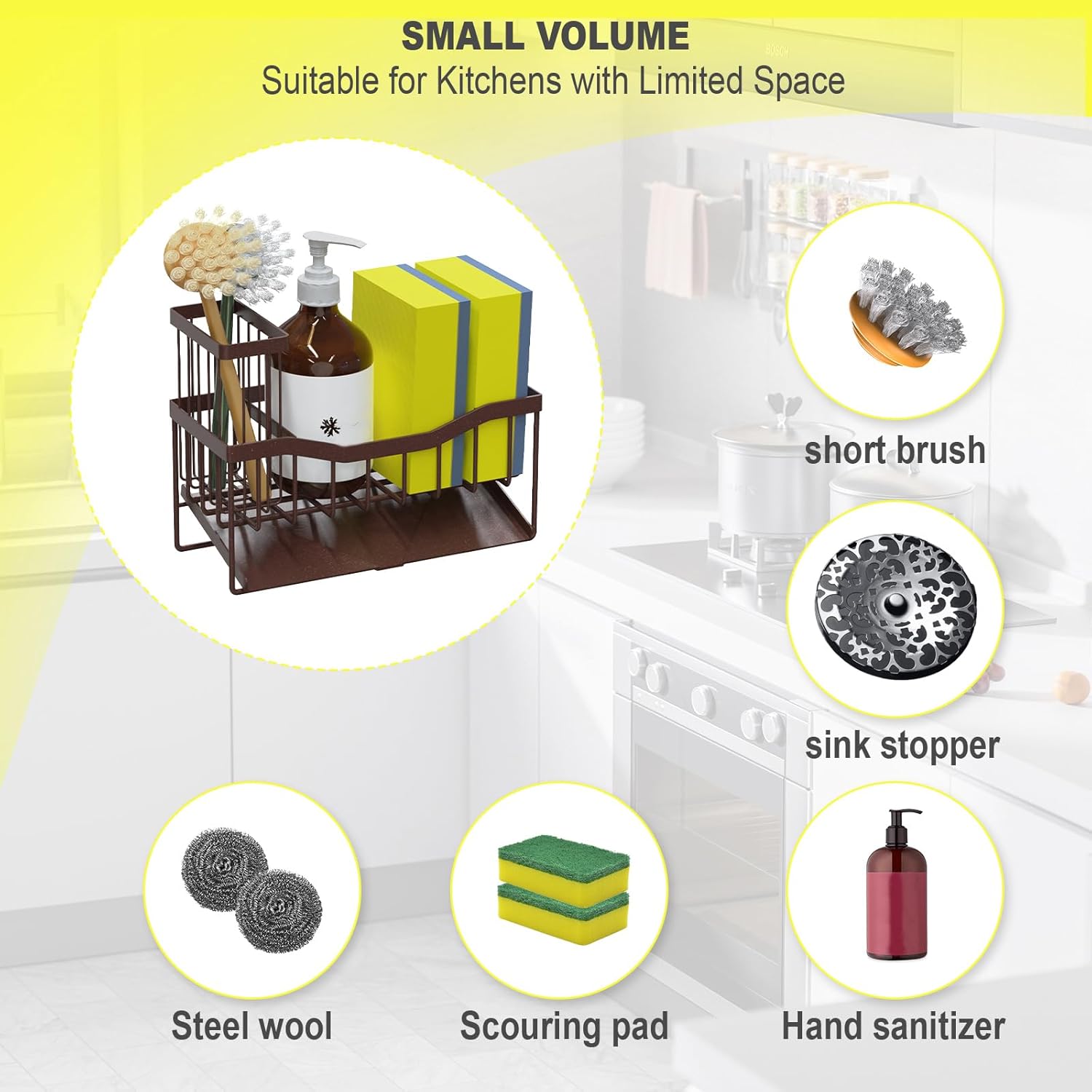 - ăSmall VolumeăKitchen sink organizer is suitable for kitchens with limited space. It measures only 8.10"*3.60"*5.50"and can hold a detergent bottle, 2 sponge balls or sink stopper. It fits neatly on your countertop near the sink without taking up too much space and make your kitchen look cleaner.