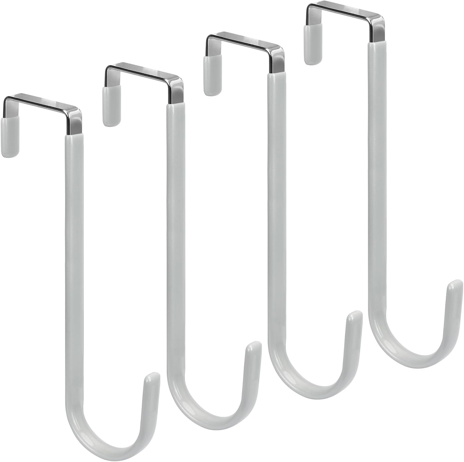 FYY Over The Door Hooks - 4 Pack Upgraded Long Door Hangers Hooks with Rubber Prevent Scratches Heavy Duty Organizer Hooks for Hanging Clothes, Towels, Hats, Coats, Bags Sliver
