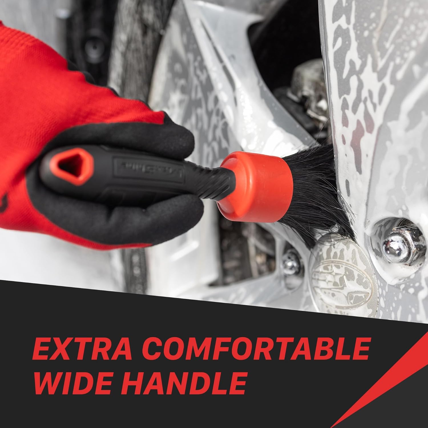 Maxshine Stubby Boar Hair Detailing Brush - Premium Detail Brush with 100% Natural Boar Hair Mixed Fiber for Auto Detailing, Wheels, Engine, Interior, Air Vents Cleaning - Bestselling Tool - Red
