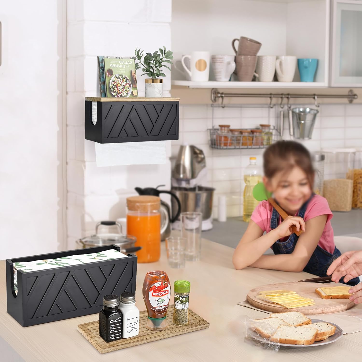 - 【Sturdy & Durable Paper Towel Dispenser】This farmhouse paper towel holder wall mounted is built with excellent quality 100% natural solid wood. Food grade safety coating, harmless and odor-free, safety enough to store c-fold, z-fold, trifold hand towel, paper towel, napkin for kitchen, bathroom and living room. Our utensil holder organizer is durable and will last for a lifetime