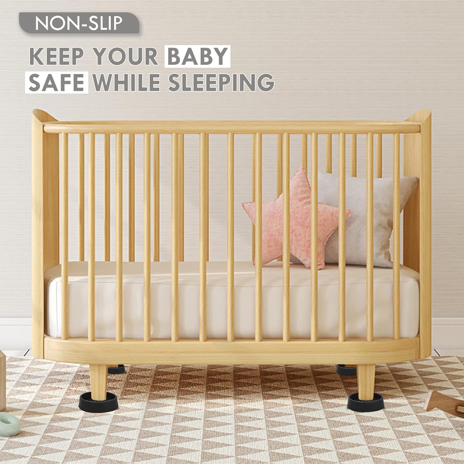 - ENOUGH SIZE - 4 Inch black round rubber caster cups, Each round rubber casters cup is large enough to hold the legs of most furniture, and the classic black perfectly with the wood to make the whole look match.