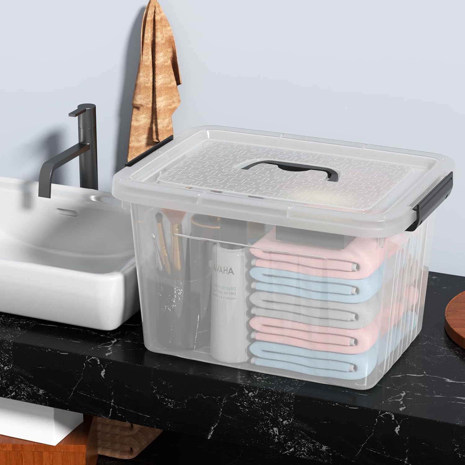 4 Packs 20 L Clear Plastic Storage Bins, Stackable Organizer Containers with Lids, Latching Box with Handle