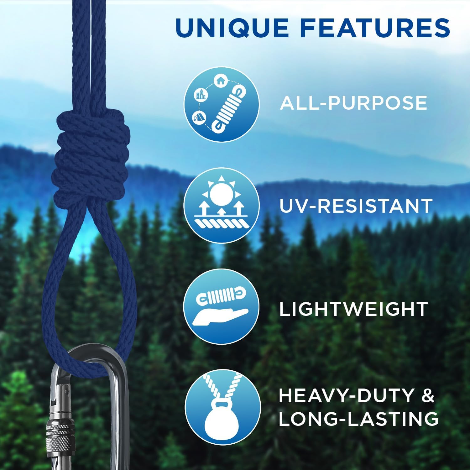 TECEUM Cotton Rope 3/16” (5 mm) – 50 FT – Strong All-Purpose Braided Rope – Natural Cotton – for Crafting, Сamping, Clothes Line, DIY, Indoor & Outdoor Use – Navy Blue