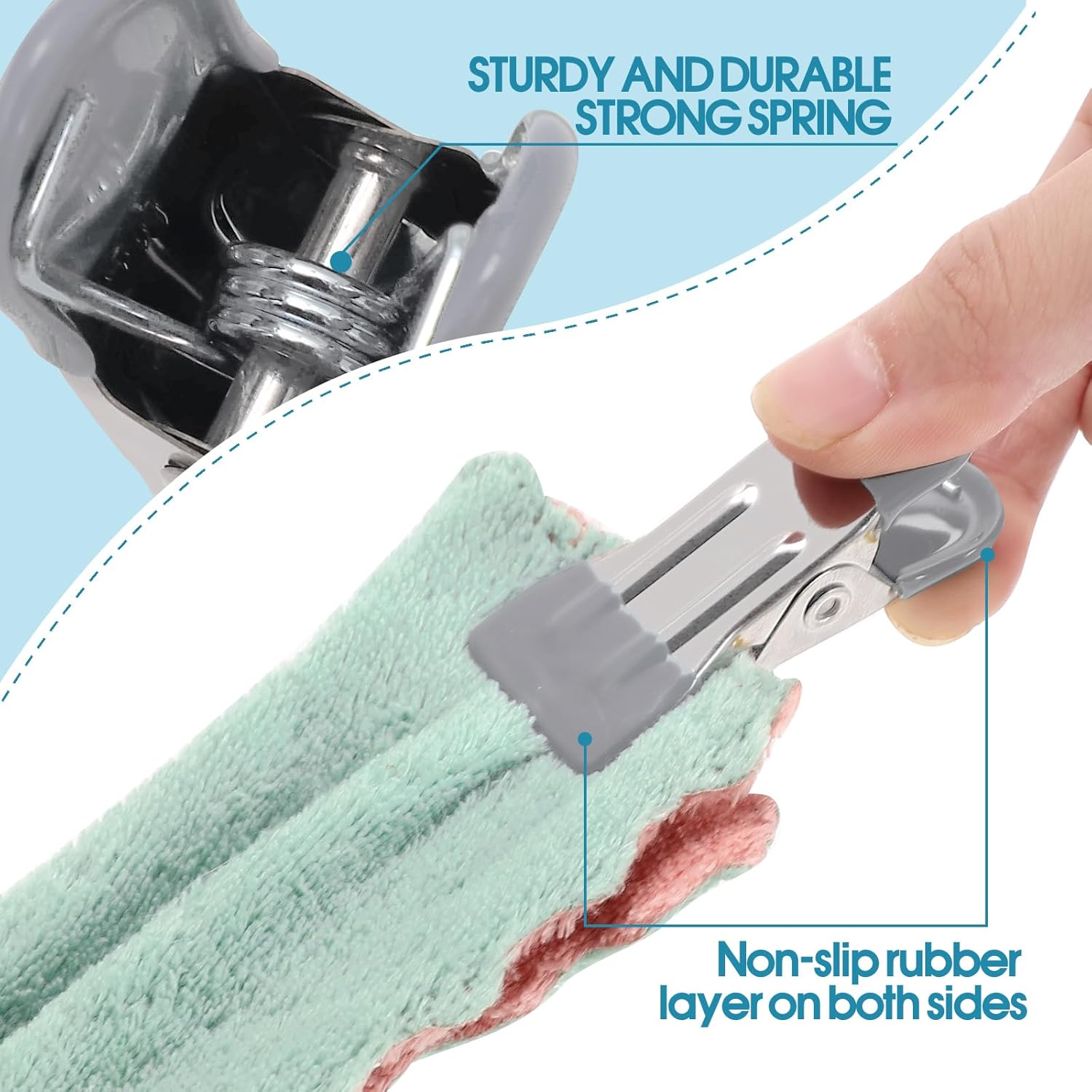 - Strong Grip: These metal bag clips have exceptional grip strength, with a 0.98-inch opening that makes the clothespin sufficiently large and robust enough to hold heavy items such as sweaters and jeans. Even on windy days, clothes will not slip or be blown away