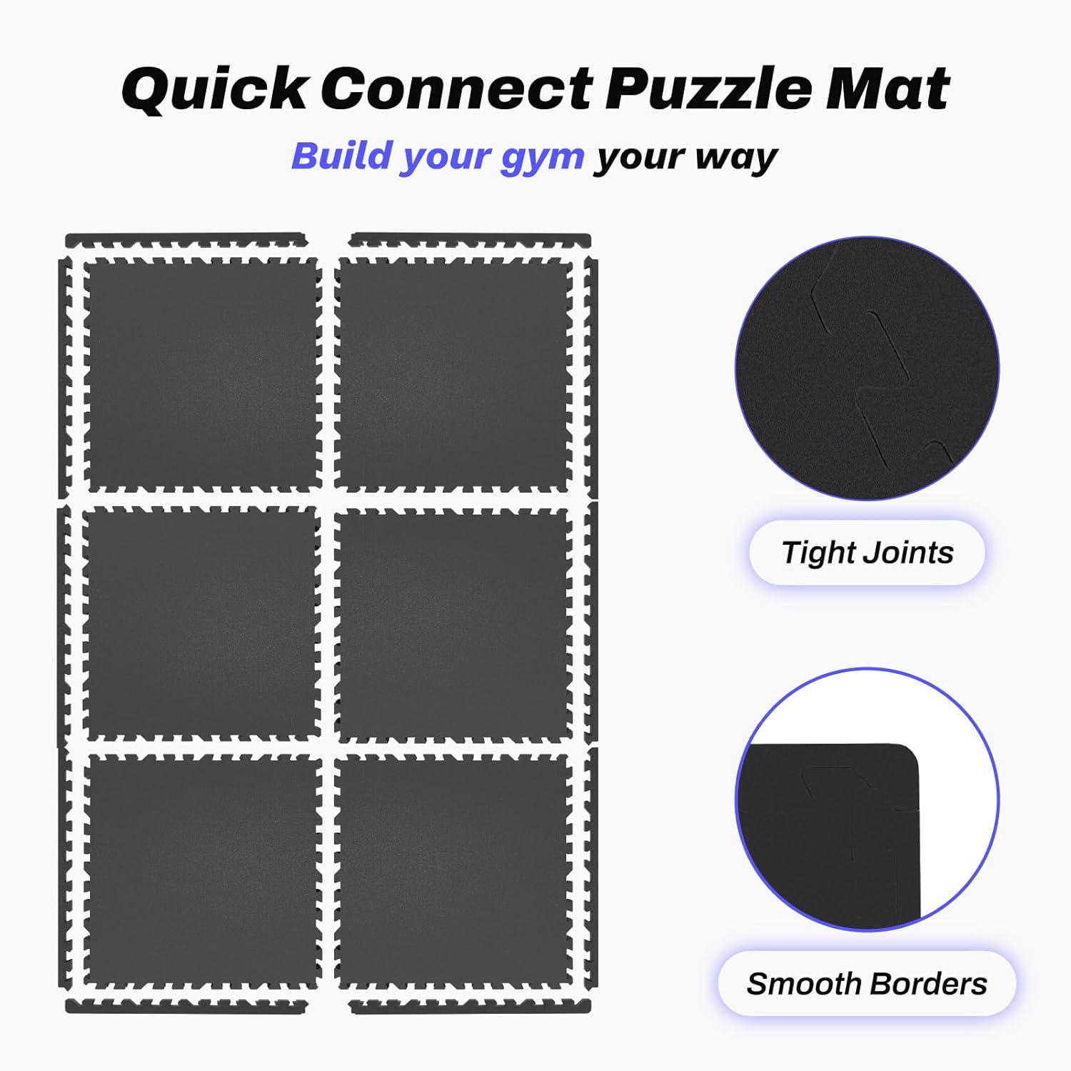 - [Easy to Assemble and Detach]: 6 tiles (24" x 24" x 0.56" each), covers 24 sq ft (6 × 4 ft). Upgraded larger interlocking locks provide a secure fit, preventing any separation during use, ensuring you can work out without concerns of shifting. Simple assembly and detachment make it effortless to set up your home gym.
