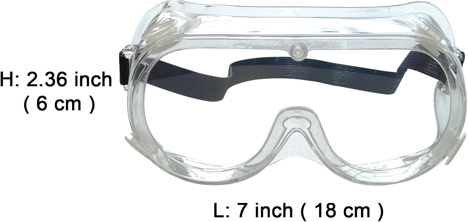 - Soft PVC frame offers maximum comfort, fits over most prescription eyewear, adjustable elastic strap fits all head sizes. Four vents allow maximum airflow while protecting against liquids, certain airborne particulates and dust in the eye area.