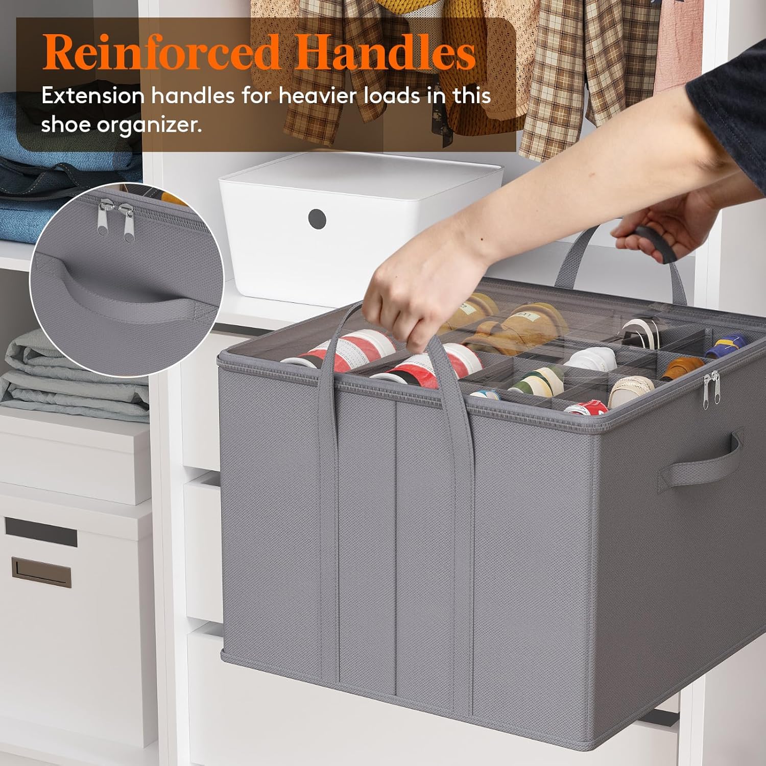 - Easy to Access: Featuring a transparent dust cover, this shoe storage organizer ensures easy identification and protection of your shoes. The durable double-sided zipper allows for smooth opening and closing, making it convenient to retrieve or store shoes.