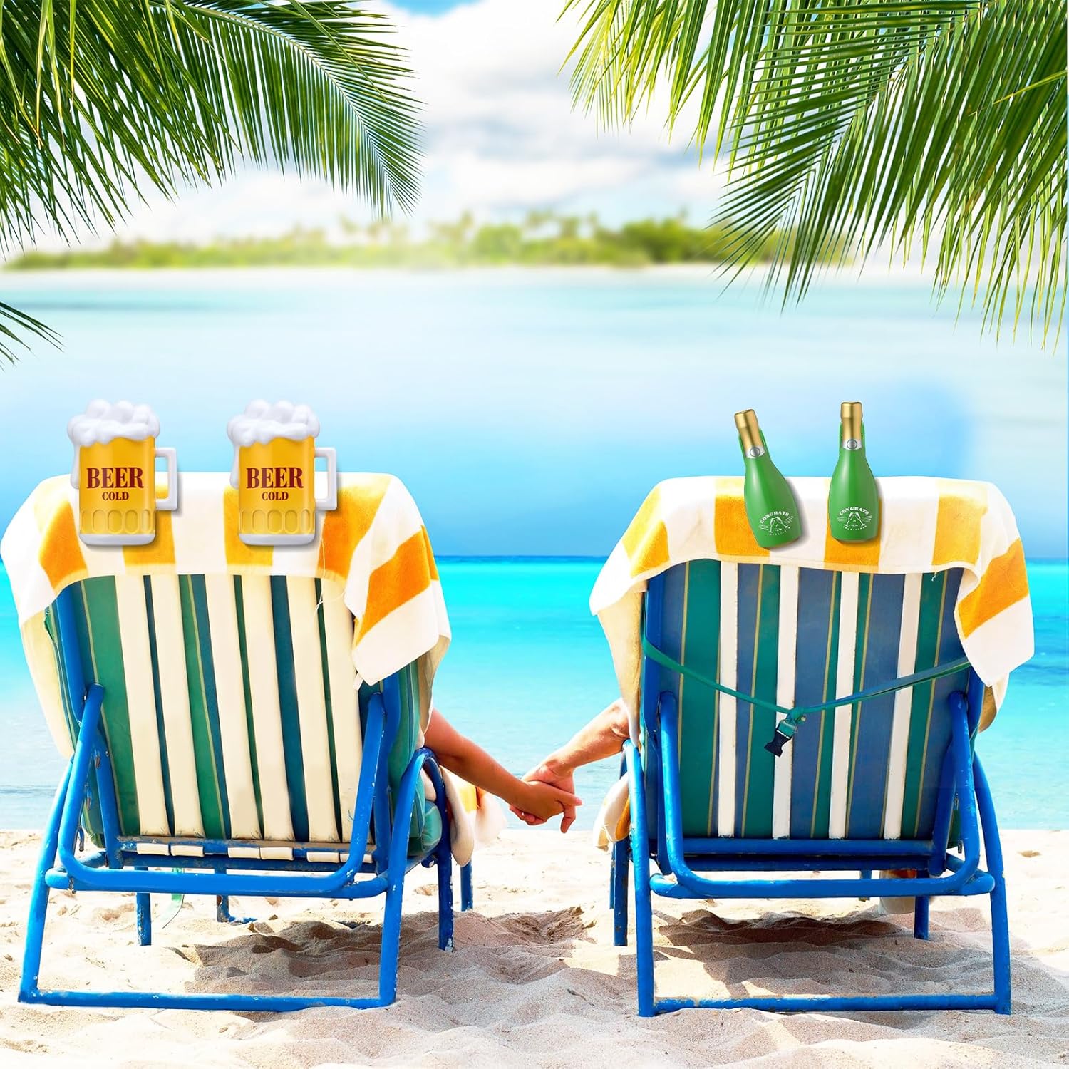 - Cute and Funny: these beach towel clips adopt palm tree, eyeglasses, cups, champagne bottle styles, look cute and funny, you can use them to clip cloths, towels or bedding