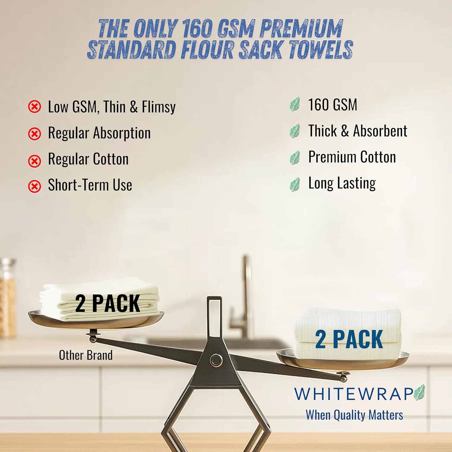 - ✅ Ultra-Thick 160 GSM Flour Sack Towels – Kitchen-Grade Absorbency Tired of thin, ineffective towels? WHITEWRAP’s high-density 160 GSM flour sack towels, made from 100% ring-spun cotton with a 130 thread count, offer exceptional thickness and ideal for drying dishes, wiping, and tough kitchen tasks.
