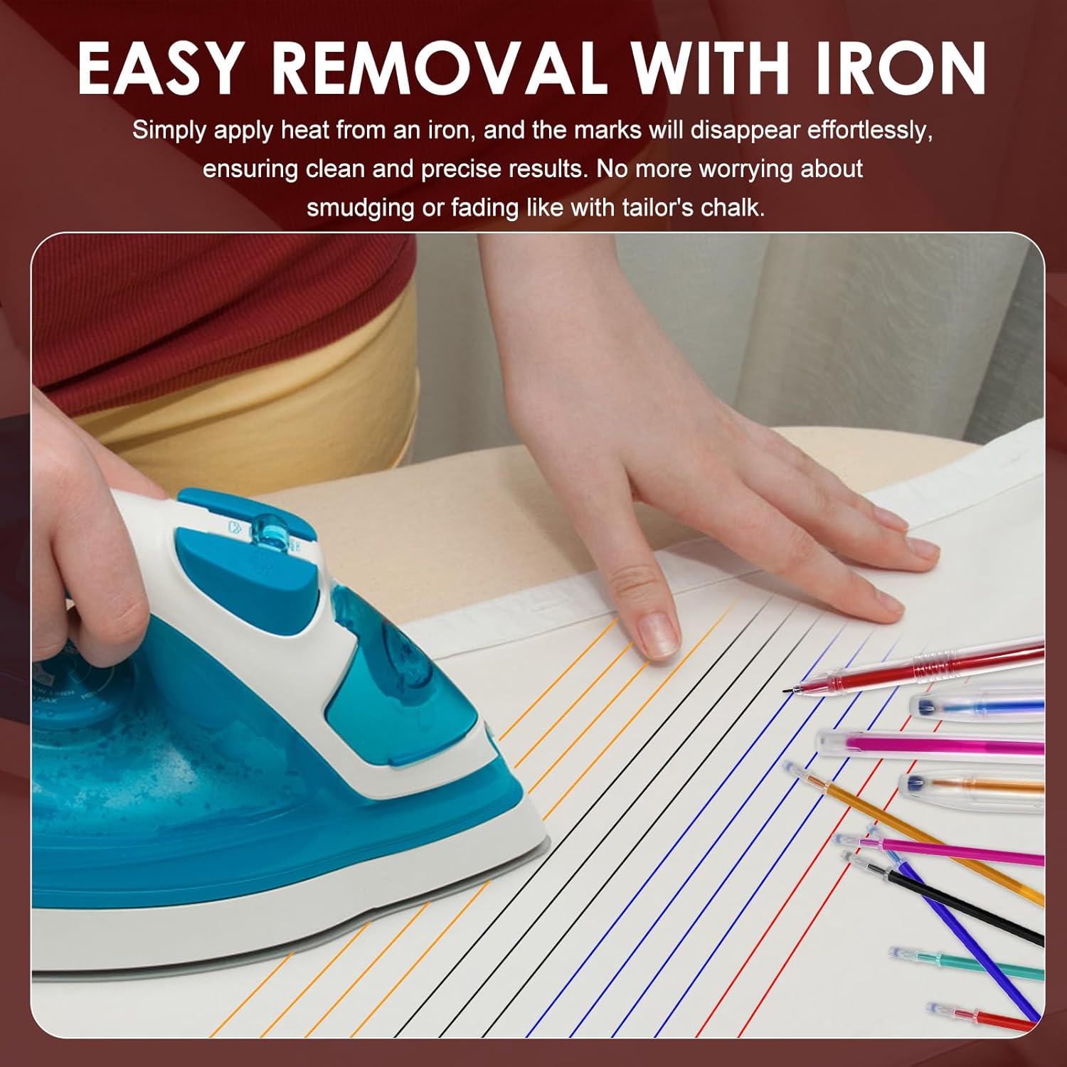 • Heat Erasable Technology: Our fabric pens feature advanced heat erasable ink that disappears with the touch of an iron. No more smudging or dust issues like traditional tailors chalk, ensuring precise and clean markings until you're ready to erase.