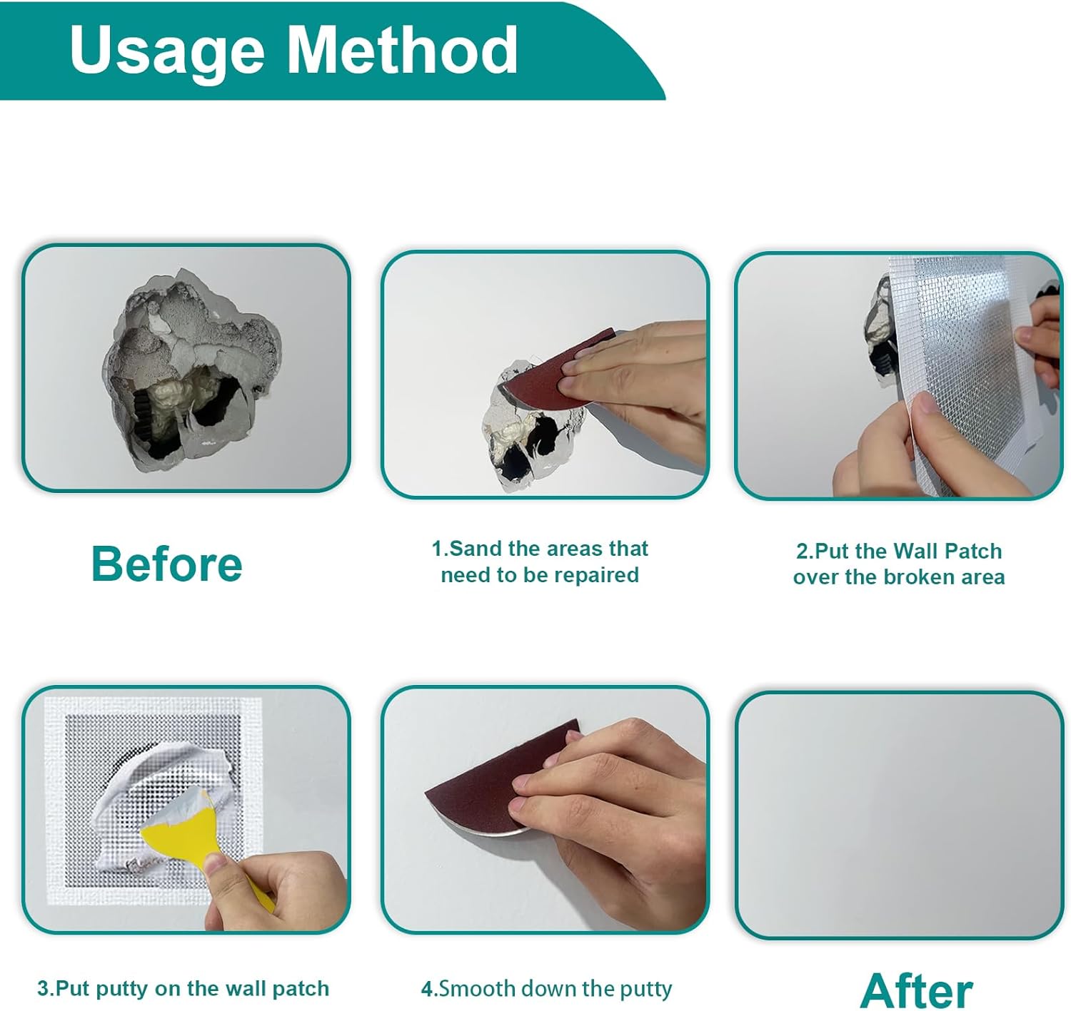 - Usage Method: Polish the area smooth with sandpaper, wipe it clean, and then apply a self-adhesive patch, cover with drywall mud, and smooth with the included scraper, polish the edges.