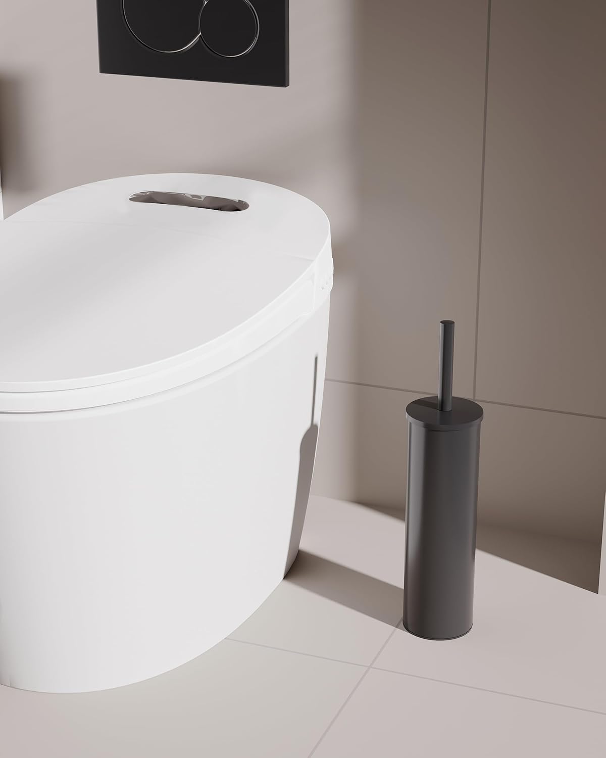 - [Stylish and Space-saving] Black toilet brush and holder hides the head inside the base from view, and the compact size of the brush holder saves space while keeping your bathroom elegant and clean