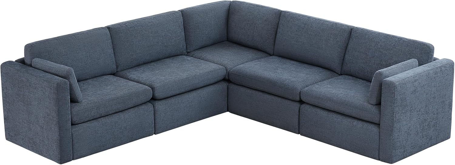 CHITA Oversized Modular Sectional Fabric Sofa Set, FSC Certified Extra Large 5 Seat V Shaped Cloud Couch for Living Room, 106 inch Width, 4 Seater and 1 Middle Corner, Blue