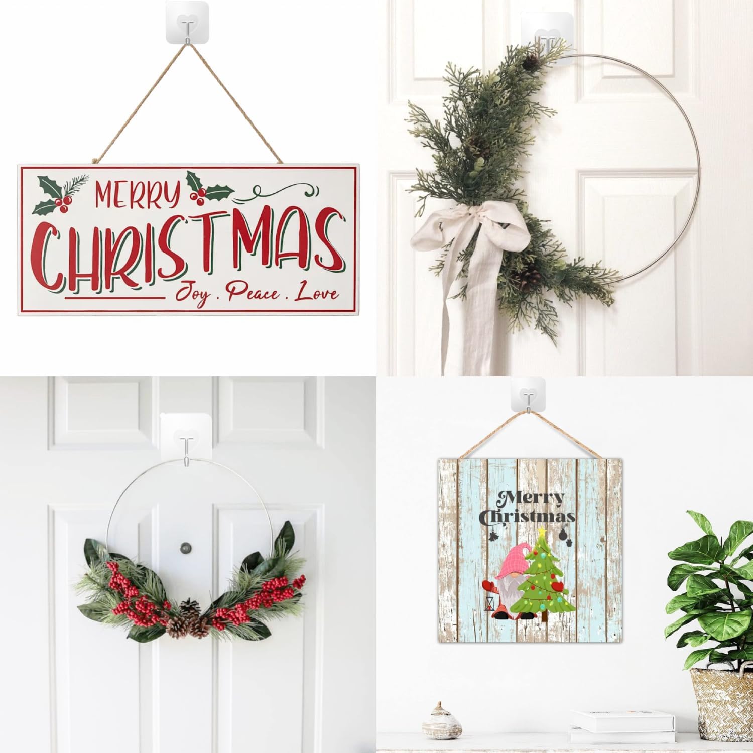 - These versatile adhesive wall hanging hooks heavy duty great for hanging coats, towels, robes, mops, brooms, jackets, hats, bags, umbrella, scarves, keys, purses, plants, kitchen utensils, loofah, brush, soup ladles, spatula etc. Set of 40 small plastic hooks adhesive. Size: 2.36" x 2.36".