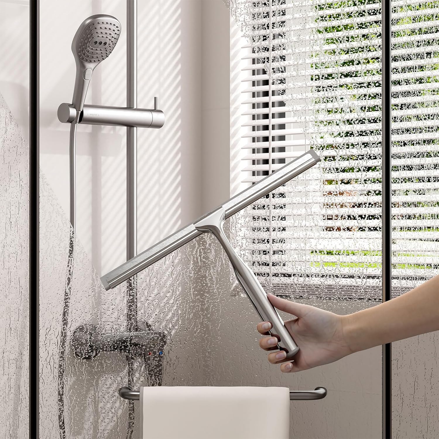 - Shower Squeegee for Glass Doors: Ergonomic shower squeegee with curved edge for efficient water removal from glass surfaces