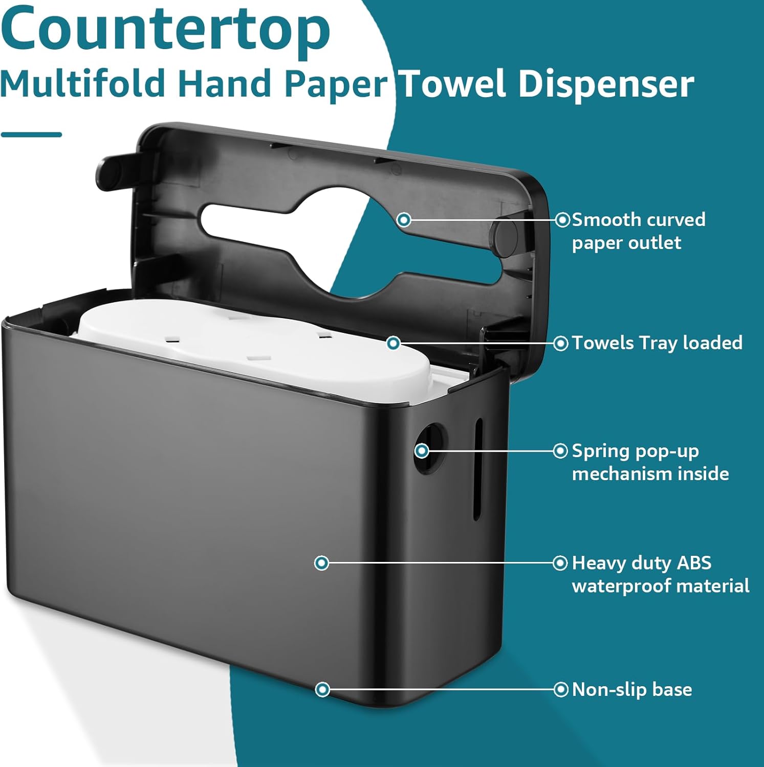 - Single Sheet Dispensing: The countertop hand paper towel dispenses one towel at a time, you can only touch the paper towel you take, avoid mess in bathroom, reduce waste and cost, keep clean and hygienic.