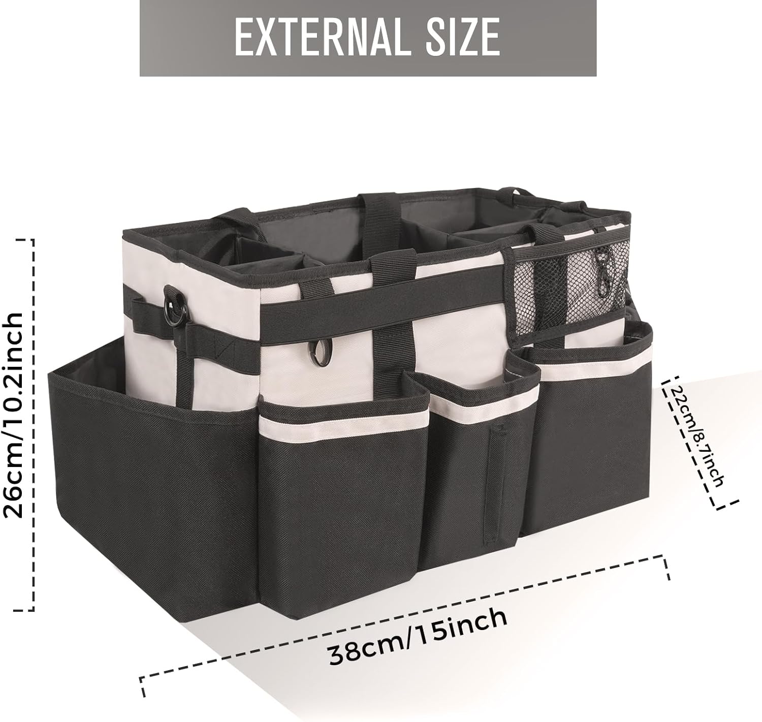 - Large Wearable Cleaning Caddy: Our cleaning organizer bag is perfect for storing cleaning supplies & tools, measures 15.7 x 9.6 x 9.1 inches. Cleaning caddy bag with handle and adjustable shoulder straps for easily cleaning in the home, kitchen, sink, car, and outside. Keep your cleaning items well-organized and neatly. Great for maids and housekeepers