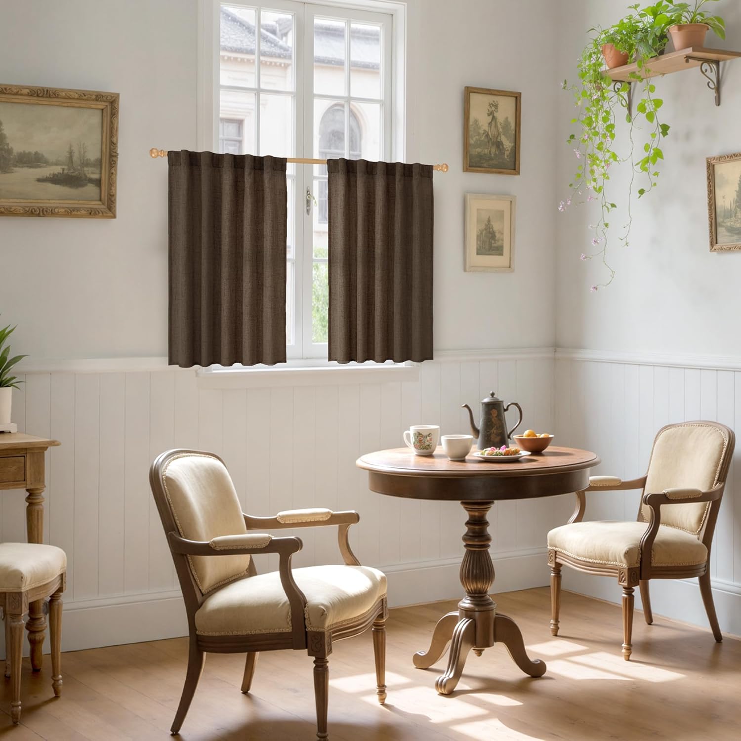 YoungsTex Brown Linen Kitchen Curtains 40 Inches Long for Windows Over Sink, Short Drapes with Back Tab Rod Pocket Light Filtering for Bathroom Cafe Window Fall Decor, 2 Panels, 42 X 40 Inch