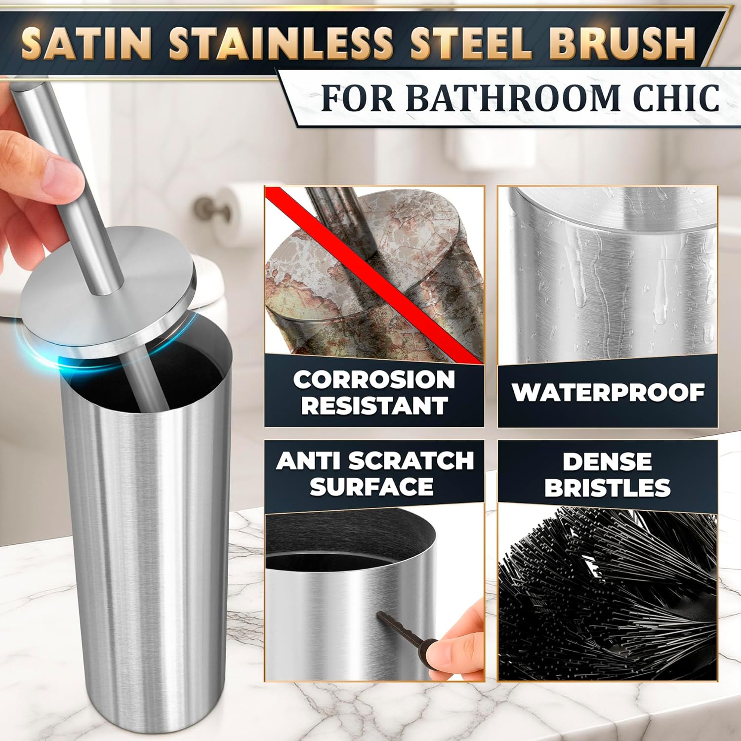 - Package Includes: This chrome toilet brush and holder set includes a toilet bowl cleaner brush and holder for convenient storage, ideal for keeping your toilet clean and your bathroom organized.