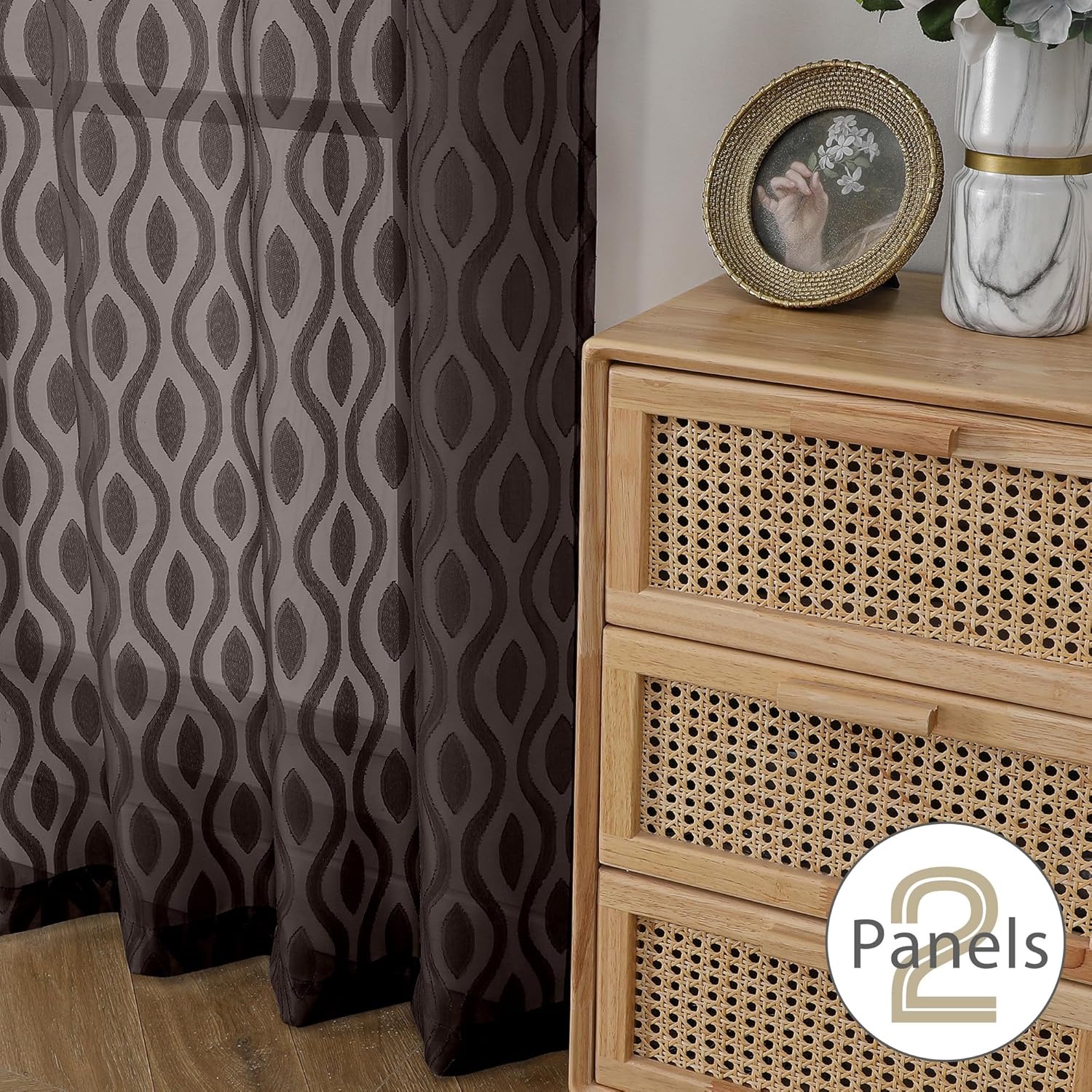 - Clip Wavy Line Design: The Clip Wavy Line brown sheer panel curtains Design features intricate, dancing waves that add depth and texture to sheer fabric. Its captivating pattern creates a dynamic visual flow, enhancing any room's decor. Ideal for bedrooms, living rooms, kid's rooms, and dining areas, this design brings sophistication and charm to any space