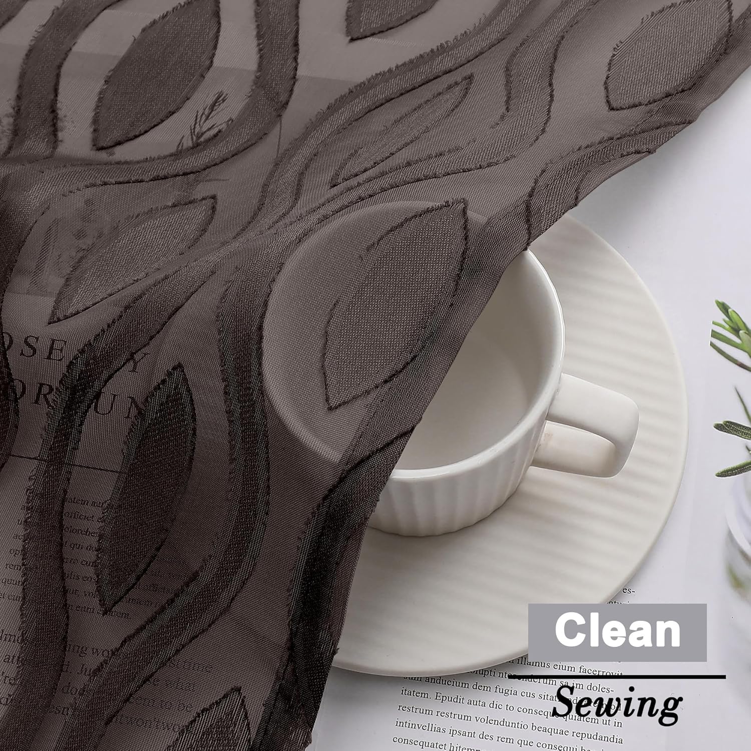 Aiyufeng Sheer Brown Curtains 54 Inch Length 2 Panels - Soft Lightweight Clip Jacquard Textured Farmhouse for Bedroom, Modern Wavy Line Voile for Living Room, 40Wx54L Inches