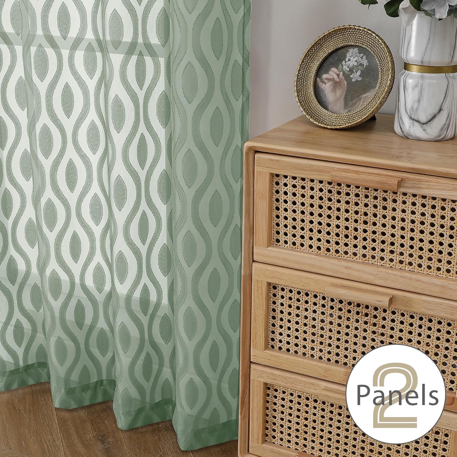 - Light Filtering Curtains: Crafted from premium quality sheer fabric, these sage green transparent sheer curtains,72 inches in length,are lightweight yet durable, allowing natural light to filter through while maintaining a sense of privacy. The soft, flowing texture of the fabric enhances the overall elegance of the design, making it an ideal choice for bedrooms, living rooms, or any space where a touch of sophistication is desired