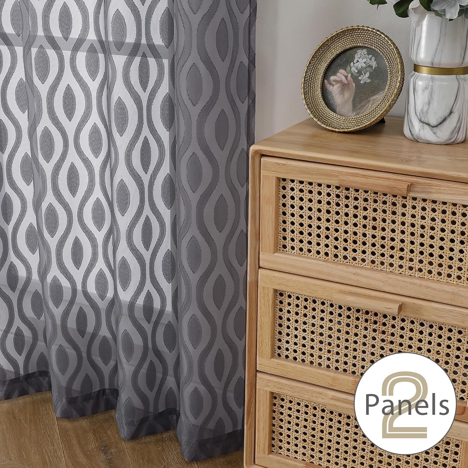 Aiyufeng Grey Sheer Curtains Tiers 36 Inch Length 2 Panels Set, Airy Lightweight Clip Jacquard Small Window Curtains, Modern Wavy Line Textured Voile Sheer Curtains for Small Windows, 40" Wx36 L Inch