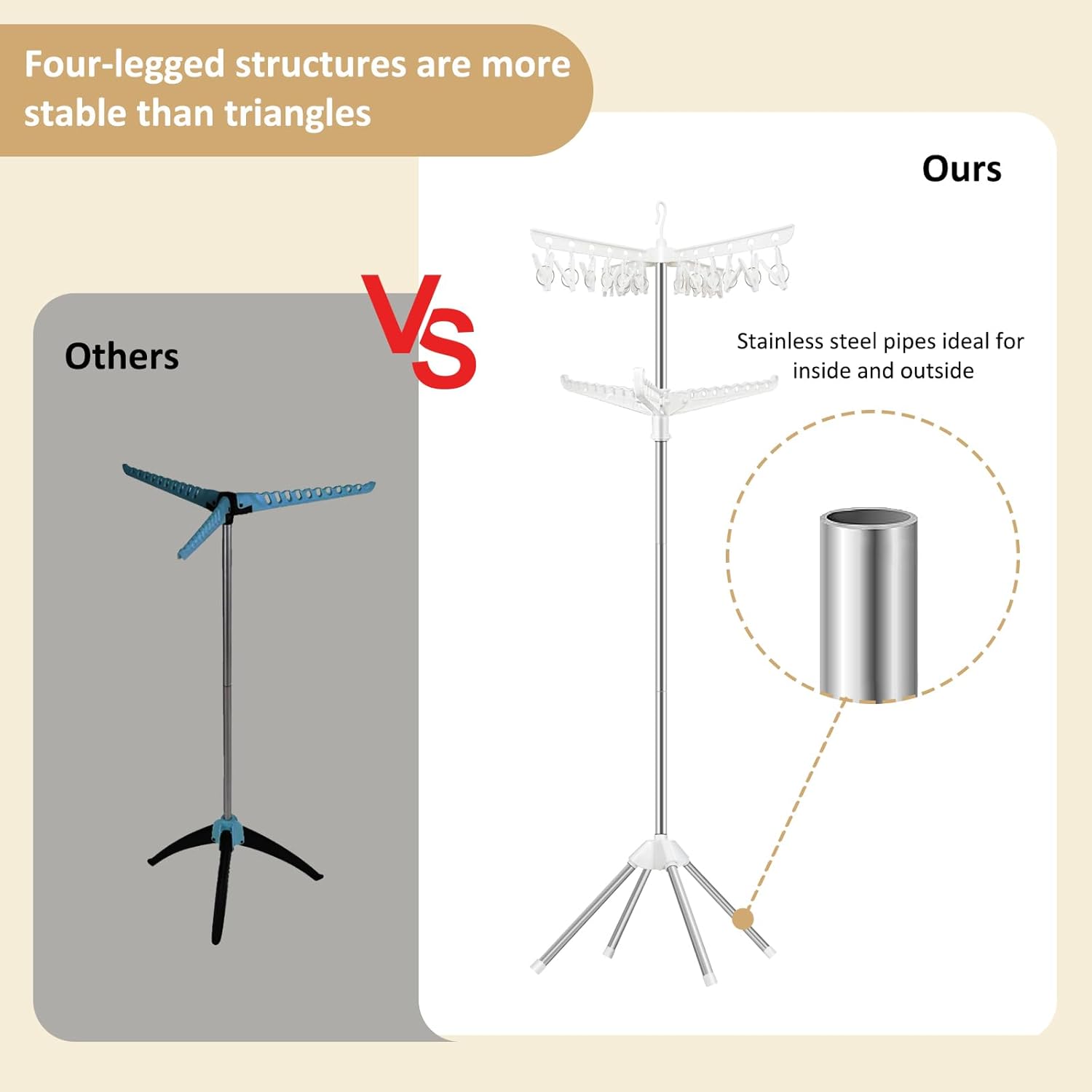 - [Sturdy & Durable Construction] Crafted from premium materials, the 4-leg design offers enhanced stability over traditional 3-leg racks, providing robust support for wet or semi-dry clothes with the promise of long-lasting durability for everyday use.