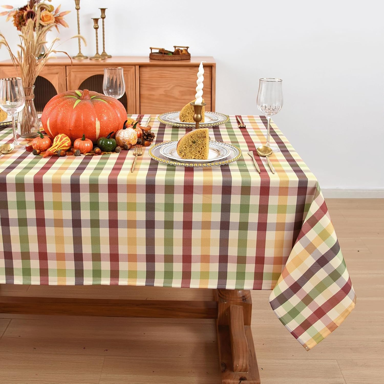 Waterproof Checkered Tablecloth Fabric - Rectangle 58x84 Inch Christmas Thanksgiving Day Table Cloth for Indoor/Outdoor Use - Harvest Table Cover for Kitchen,BBQs,Parties