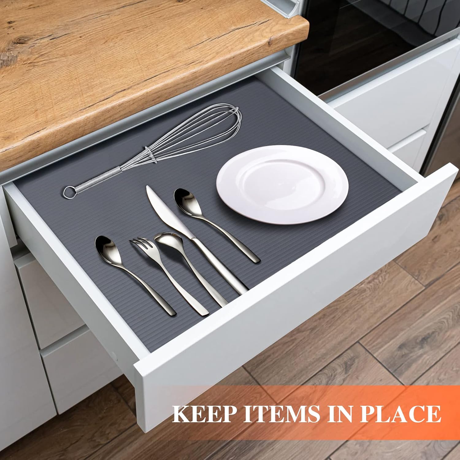 Shelf Liners for Kitchen Cabinets, 12" x 120", Non Adhesive Shelf Liner, Non-Slip Kitchen Drawer Liners, Waterproof Durable Cabinet Liners for Shelves, Pantry, Dark Gray