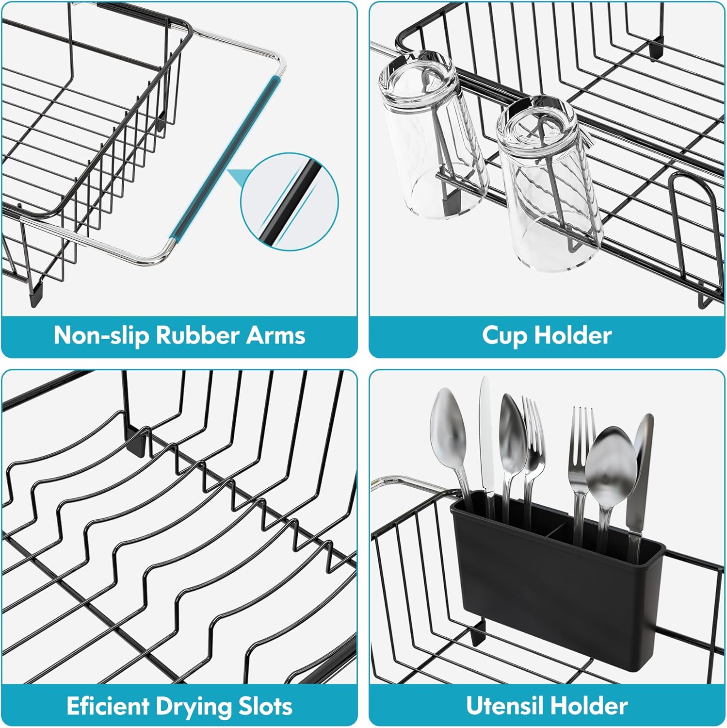 - 🛡️304 Rust Proof Stainless Steel Construction: Built with corrosion resistant steel rods. Reinforced welds prevent bending. Smooth stainless steel dish drying rack surface wipes clean instantly. Maintains appearance for years, durable metal dish drying rack choice.