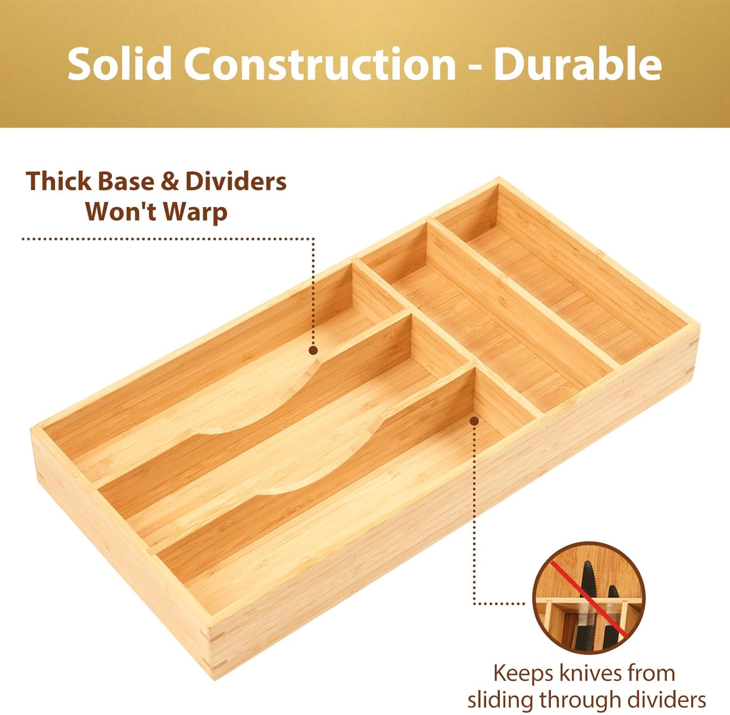 - Specific Uses For Product : Kitchen silverware organizer in drawer. premium bamboo (even the base), with silicone anti-skid feet. Kitchen silverware organizer in drawer. premium bamboo (even the base), with silicone anti-skid feet.