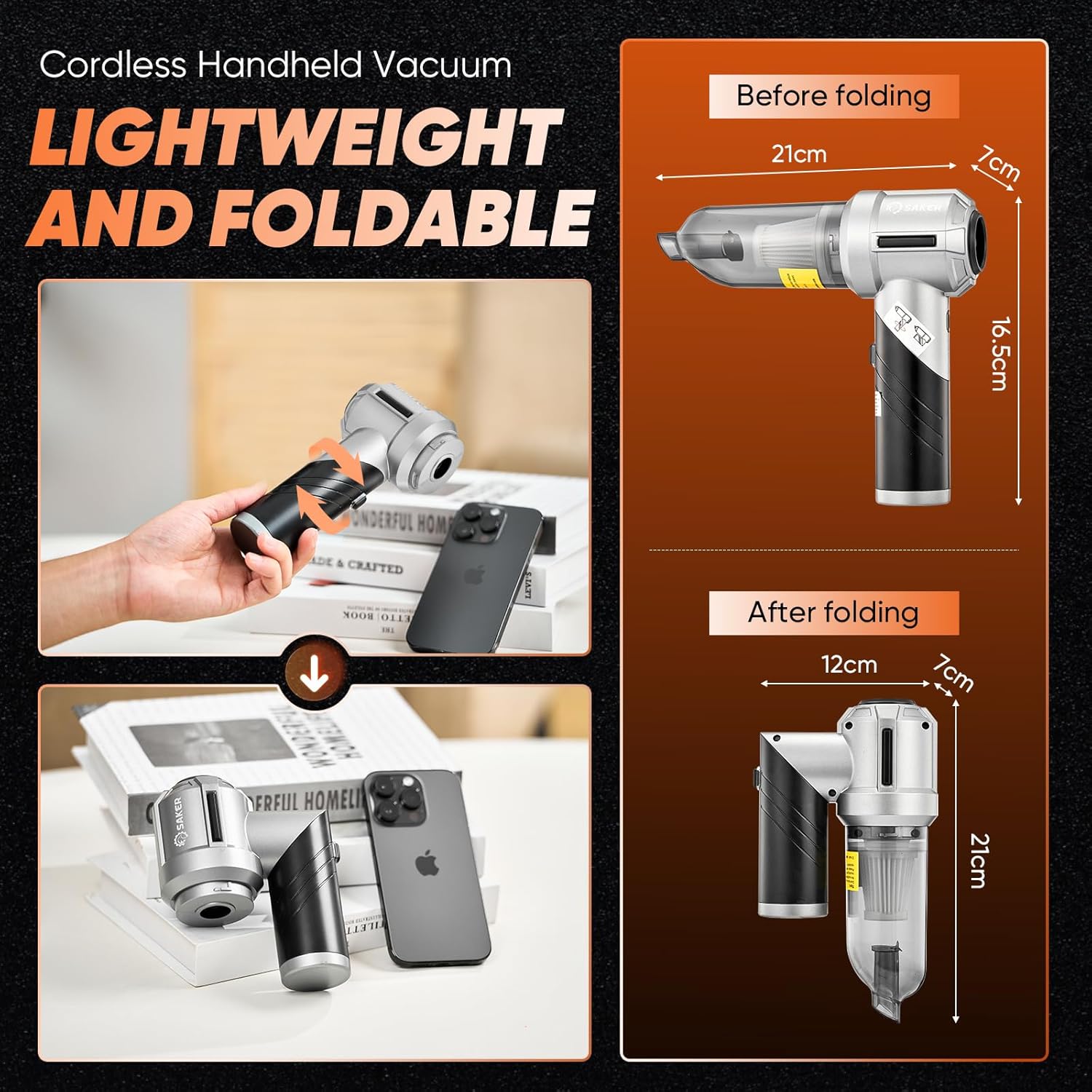 Saker Portable Handheld Vacuum Cordless Portable 17000PA Foldable Car Vacuum Cleaner Mini Dust Blower with Brushless Motor for Office Pet and Home Cleaning HL133