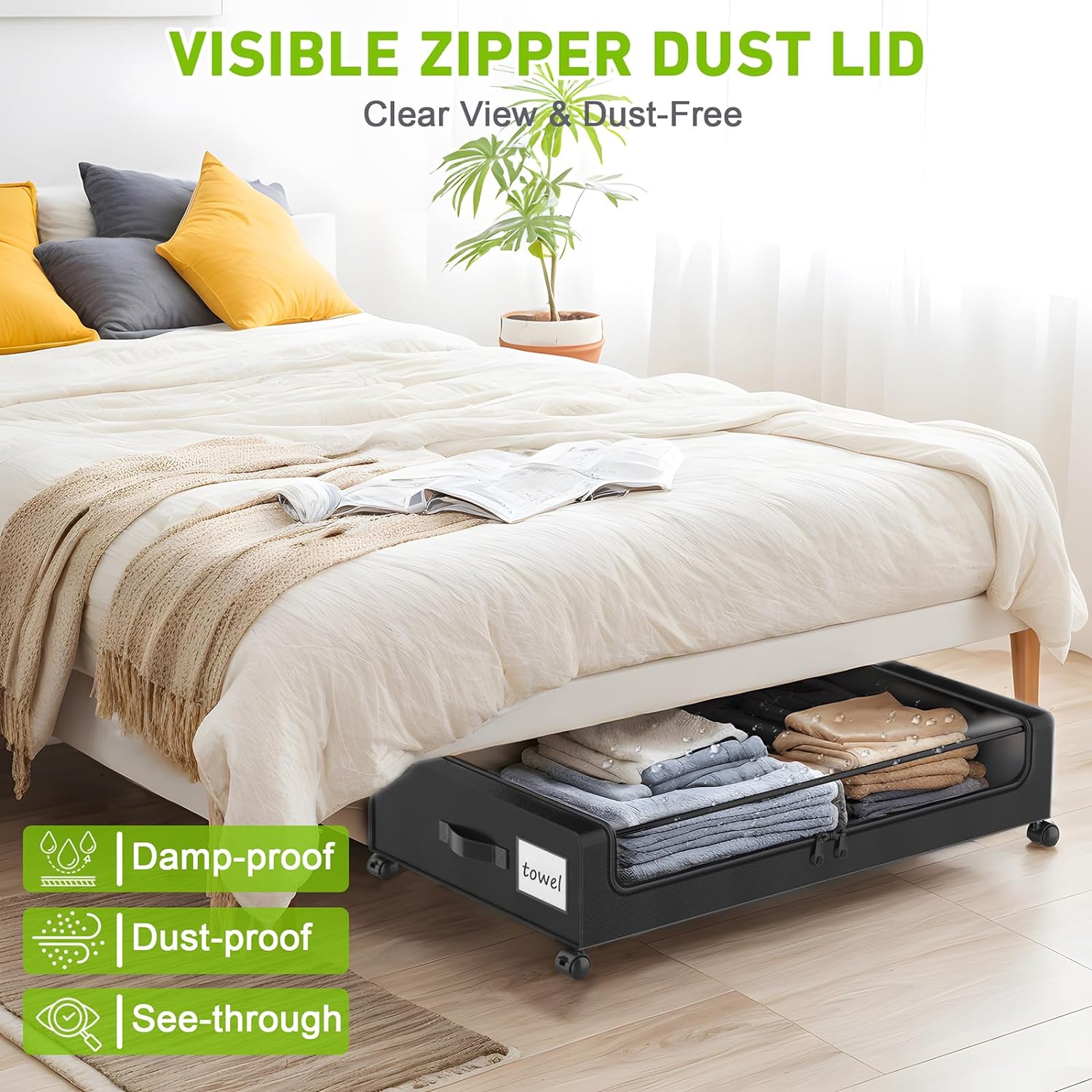 - 🏷️【Label & Clear Lid Design】The under-bed storage bins with transparent LIDS and labels make it easy to quickly identify your locker contents without having to open the bin, preventing misplacement and eliminating the hassle of searching for items. The under the bed storage box adopts double zipper design and high-quality material to thoroughly keep out moisture, oil stains, dust and dirty things, ensuring that your items are clean and no longer messy.
