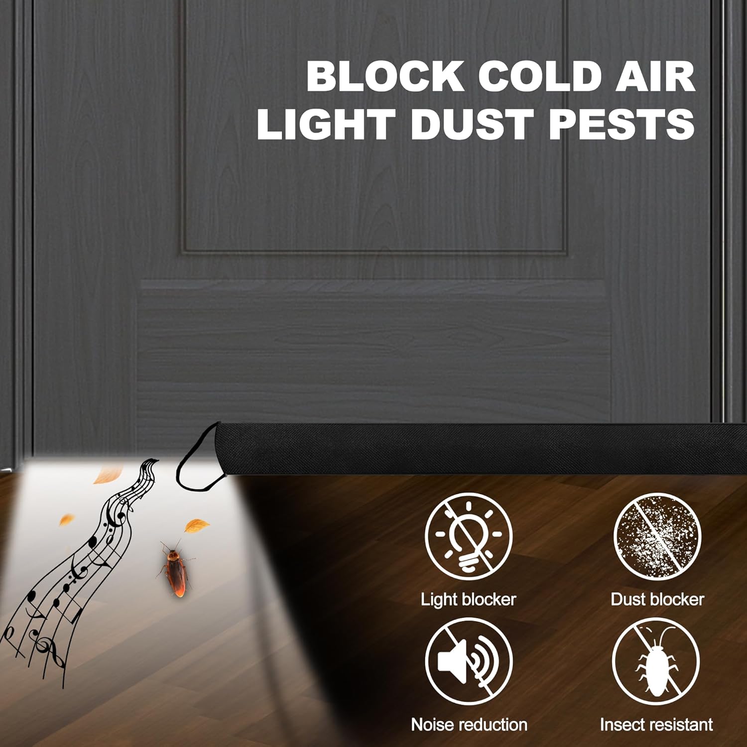 - NEW DESIGN DOOR DRAFT STOPPER - Adopt the latest design, it fits the door seam tightly to the greatest extent and achieves the maximum blocking effect. The inner enough weight filler and the exterior soft fabrics let this door blocker and the door closely fit to block wind, dust, and light. Simple, smart, and incomparably effective, this draft blocker helps prevent exterior drafts making it more efficient to heat and cool your home.