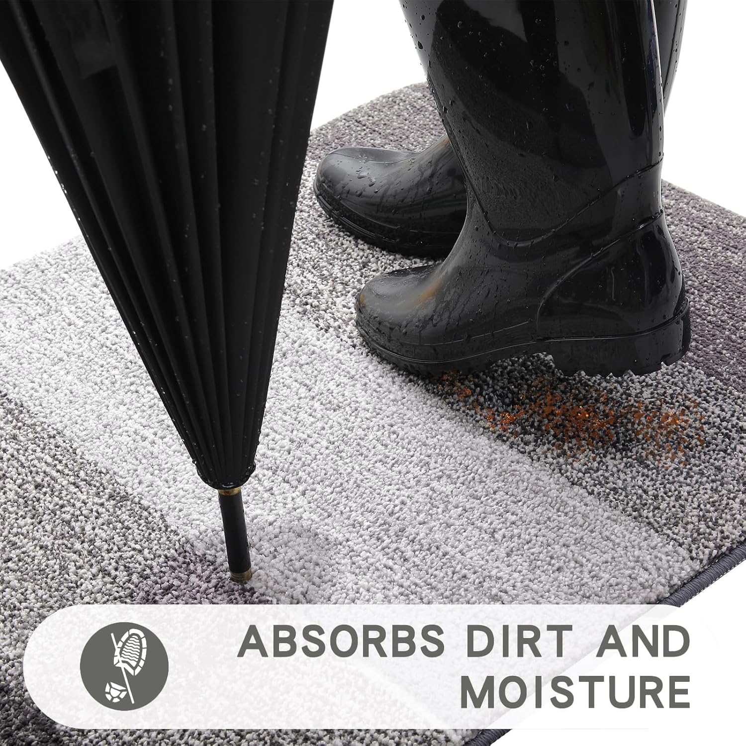 - ABSORBS MOISTURE AND DIRT:Kitinjoy indoor doormats effectively trap water, mud, and dirt. Countless polyester fibers keep indoor areas clean, and dry. Even rain, snow, or muddy weather can protect the floor from spills or stains.