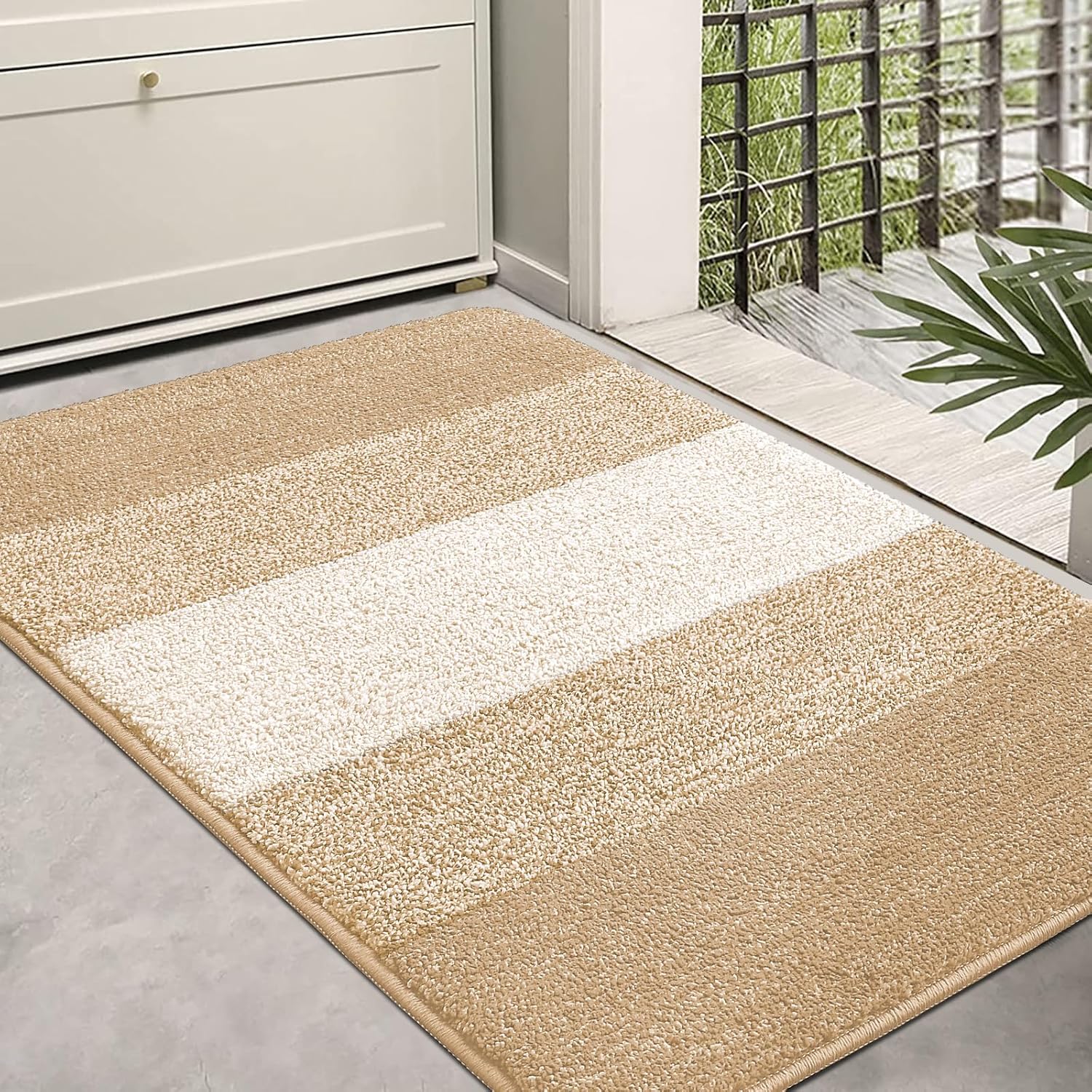 Kitinjoy Indoor Outdoor Door Mat, 36x24 Non-Slip Absorbent Dirt Trapper, Low-Profile Washable Inside Entrance Front Floor Mat, Sturdy Soft Entry Doormats for Entryway, Beige