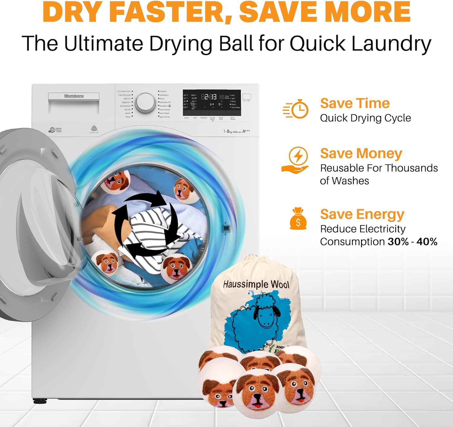- Reduced Drying Time: Wool dryer balls help to separate and aerate clothes, allowing for better air circulation. This can lead to up to 30-40% faster drying times, which saves energy and reduces electricity costs.