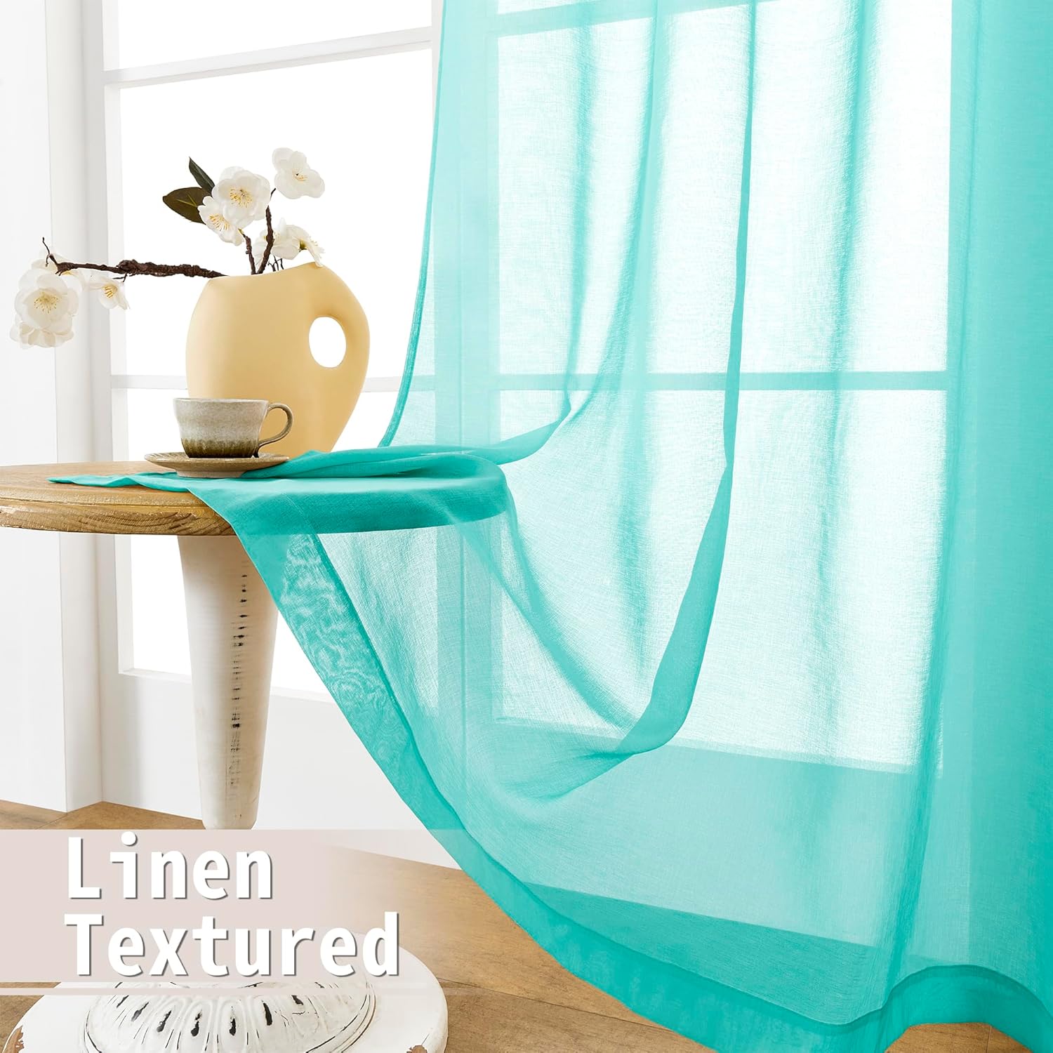 - Light Filtering: The linen look aqua blue door sheer curtain can allow the right amount of natural light through to bring your room a hazy and softer vision, keep you away from someone’s glance from outside and provide you some privacy.