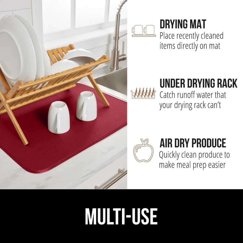 GORILLA GRIP Ultra Water Absorbent Microfiber Dish Drying Mat, 18x32, Quick Dry Thick Mesh, Slip Resistant Pad for Sink Dishes or Under Rack, Kitchen Counter Accessories, Machine Wash Mats, Red