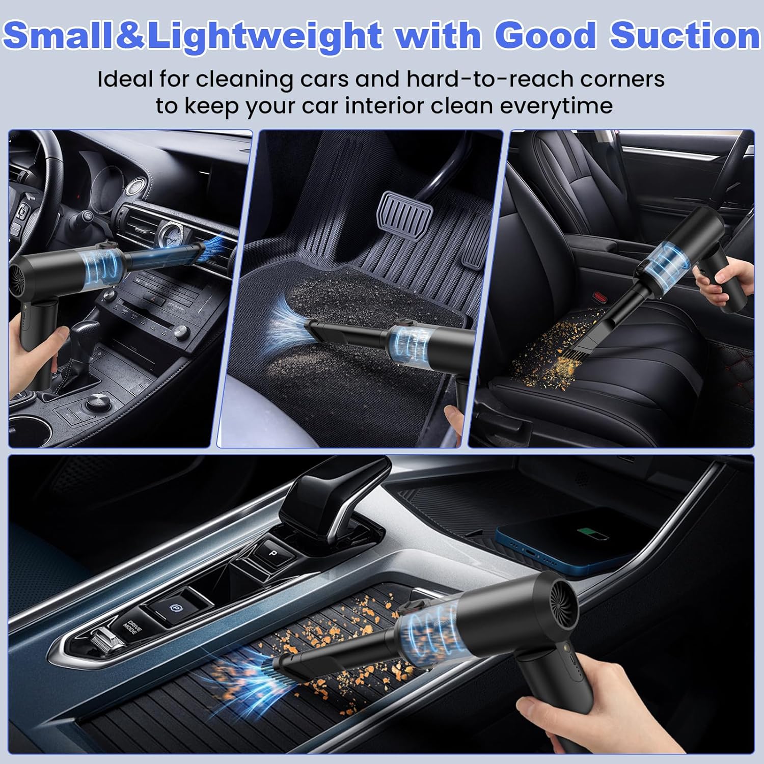 - 4-in-1 Multifunctional Car Vacuum Cleaner & Air Duster - JYNSROU mini vac vacuum cleaner comes with various accessories to handle blowing, inflating, vacuuming, and pumping tasks. Easily blow away dirt, debris, dust, and other particles from surfaces, and suck out stubborn dirt from keyboards, corners, and crevices. Perfect for cleaning your home, car, and pet hair, it also inflates life rings and air beds, and can be used as a compression bag pump for storing clothes, works as a BBQ fan.