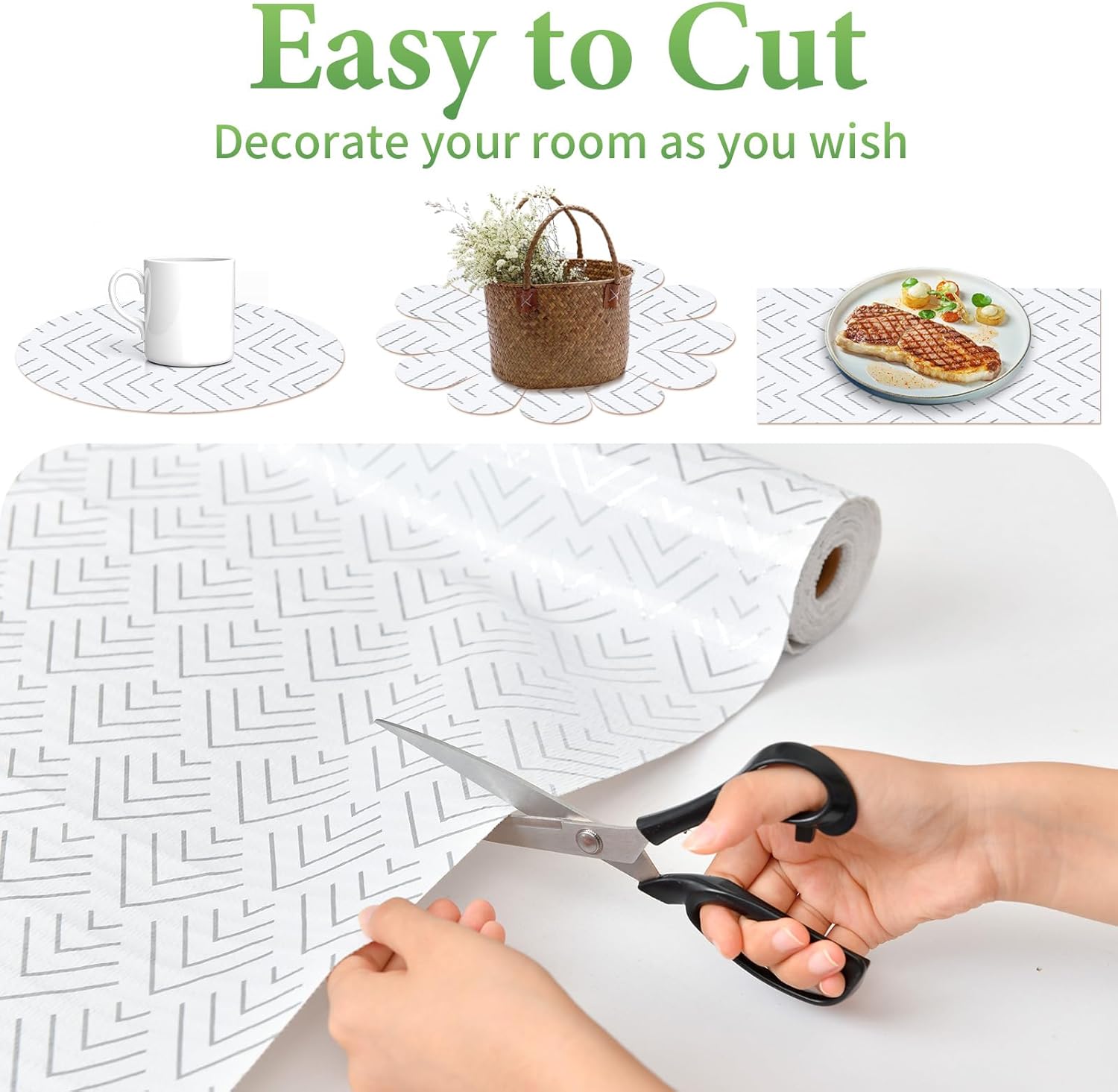 Shelf Liner for Kitchen Cabinets Non Adhesive Drawer Liner Non-Slip Thickened Shelf Liner Paper Strong Easy to Clean for Tool Box Refrigerator with Knife and Tape Measure,Silver Arrow,17.3 x 236.2 in