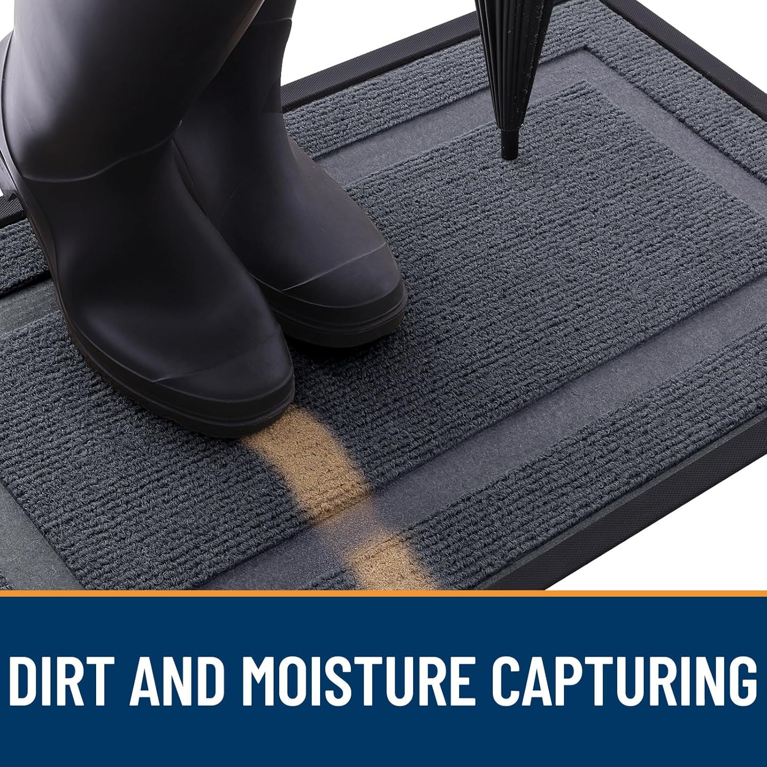 - [CAPTURES DIRT AND MOISTURE] The sturdy woven topside and deep grooves effectively capture dirt, mud, and moisture; the OLANLY door mat is designed to prevent unwanted debris from being tracked into your home.